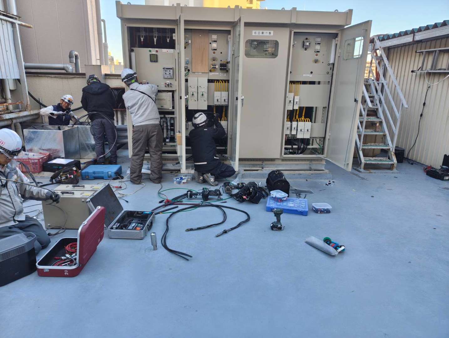 既存のキュービクルを解体し、屋上から撤去します。